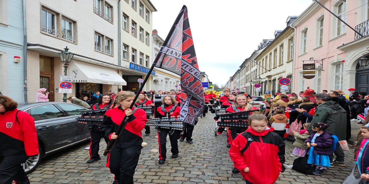 Am Montagmorgen ging es dann ans Taschenpacken, Zimmer säubern, Frühstücken, Busbeladen und Abfahrt zum Rosenmontagszug nach Düsseldorf! Mit Startnummer 9 mussten wir nicht ganz so lange warten und es ging zügig los. Das Wetter war leicht bewölkt, aber es schien sich gut zu halten! Oder auch nicht… Kurz bevor wir unseren Fernsehauftritt zum Besten geben wollte, fing es an zu regnen. Der Wettergott war nicht auf unserer Seite! Nichtsdestotrotz konnte man uns im WDR und ARD sehen und hören! Die Stimmung war weiterhin toll und wir haben gemeinsam mit dem Publikum gefeiert. 2,5 Stunden später war auch hier der Zauber vorbei und es ging zum Bus. Ein letztes Mal alles einladen und ab nach Hause!